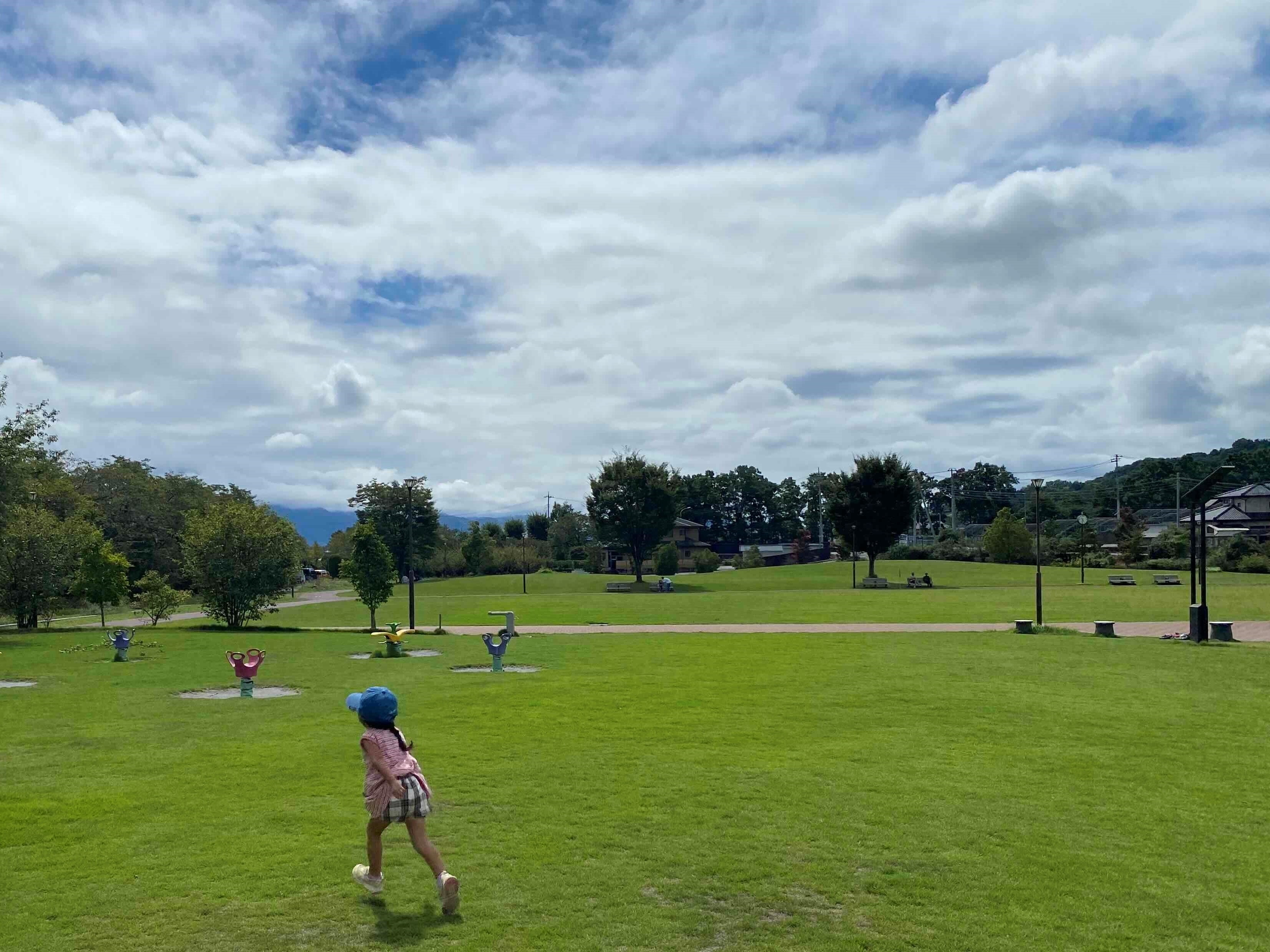 雨上がりの櫛形公園。気持ちよく晴れた朝、元気いっぱい遊んでます!