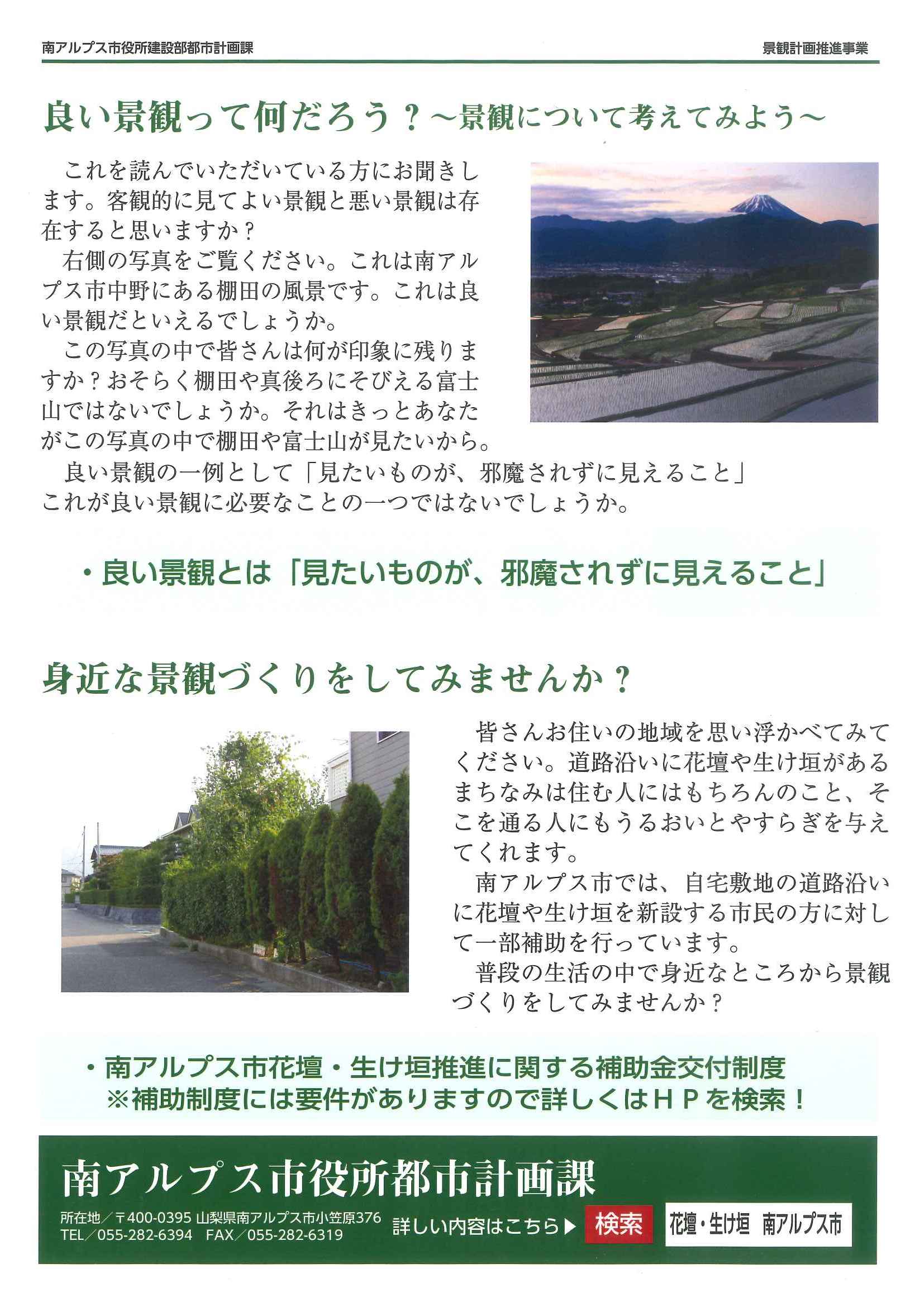 南アルプス市花壇・生け垣推進に関する補助金交付制度のご紹介