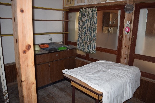 ・登記されている木造かわらぶき2階建ては、上下水道が接続されておらず、風呂がないため大幅な補修が必要。