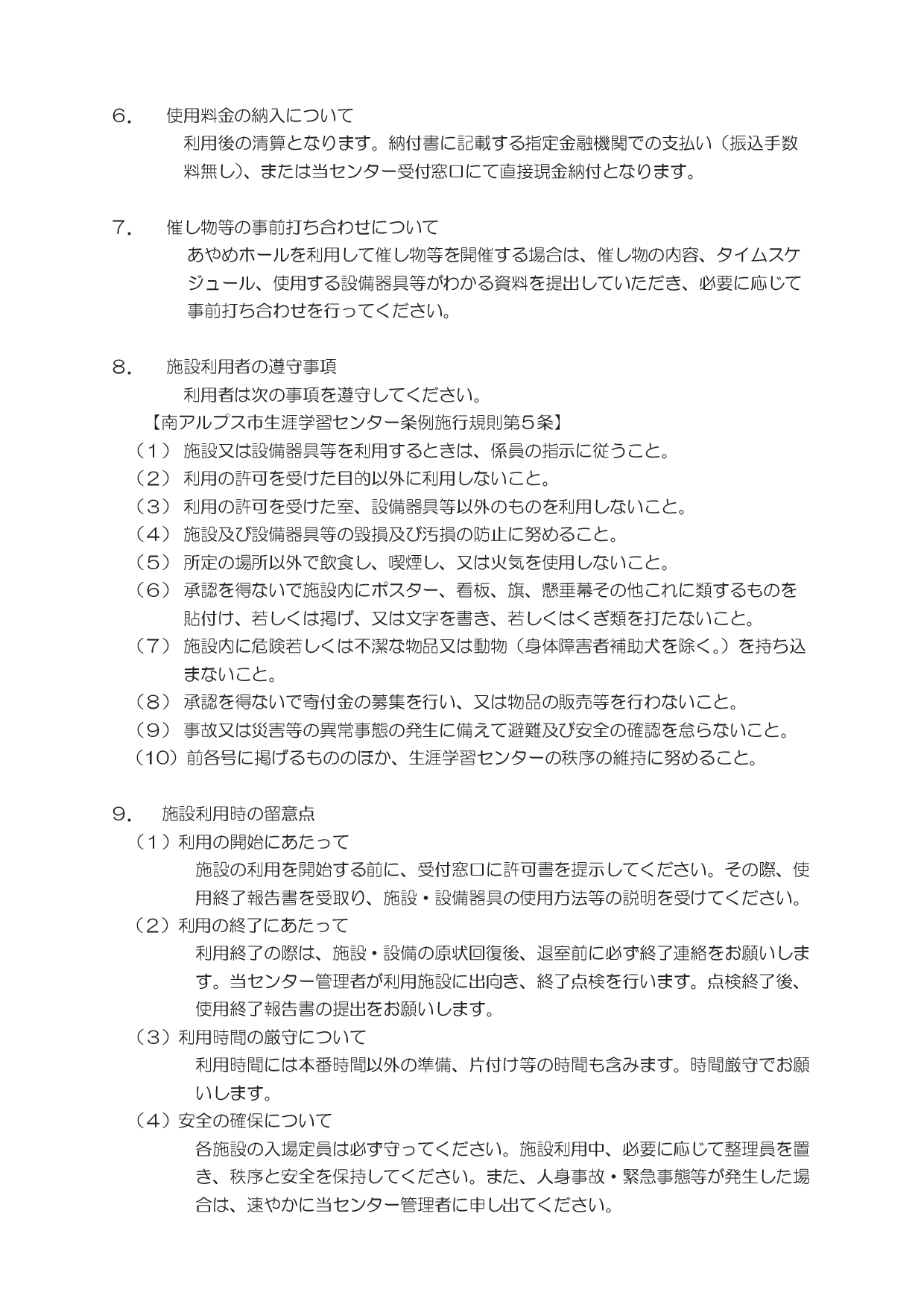 - センター利用案内については「櫛形生涯学習センター利用ガイド」をご確認ください。